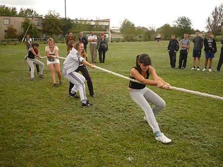 7 вересня до Дня фізичної культури і спорту» були проведені спортивні змагання серед учнів ліцею. В програму входили змагання з футболу, володіння обручем, перетягування канату, гирі. Всі учасники змагань брали активну участь і були нагороджені солодкими призами. Фінальні змагання з футболу будуть проводитись 11 вересня між групами учнів III курсу та групою ТУ . Нагородження переможців за підсумками змагань буде проводитись 13 вересня 2012 року. |