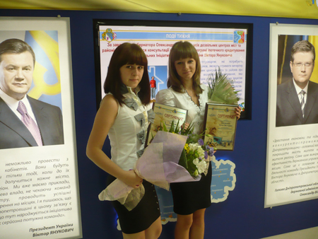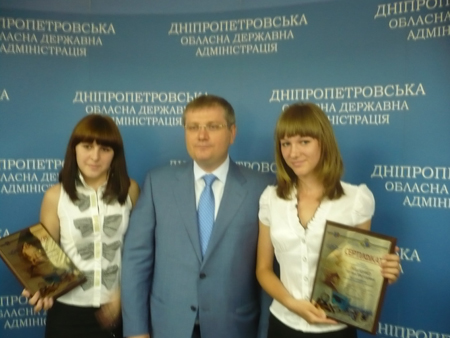 20 червня 2012 року в обласній державній адміністрації відбулася урочиста зустріч голови облдержадміністрації Вілкула О.Ю. з обдарованою молоддю Дніпропетровщини з нагоди Дня молоді. Ученицям групи №6 Третяк Катерині та Ляшенко Тетяні були вручені сертифікати на отримання обласної іменної стипендії |