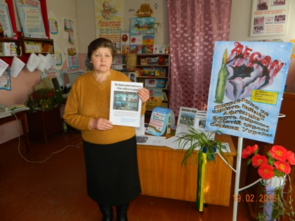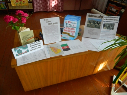 17 лютого в бібліотечно-інформаційному центрі пройшов урок-реквієм до Дня вшанування учасників бойових дій на території інших держав, який підготували та провели бібліотекар Козиряцька В.К. та вихователь гуртожитку Поляков В.П. Учні мали змогу переглянути презентацію про випускників ліцею - учасників Афганістанської війни, хроніку тих часів та тематичну книжкову виставку: