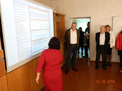 Огляд навчально-матеріальної бази ліцею розпочався з оновленого кабінету математики, оснащеного сучасним мультимедійним комплексом наданим навчальному закладові до ювілейної дати за сприяння першого заступника голови Дніпропетровської обласної державної адміністрації Кужмана О.М. |