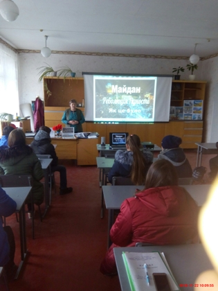 Сьогодні у ліцеї до річниці Революції Гідності для учнів був проведений урок пам'яті загиблим на майдані Незалежності. Учні переглянули фільм "Пам'яті Небесної сотні". |