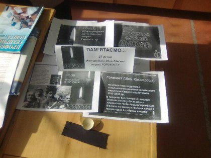 Сьогодні у ліцеї проводився урок-реквієм "Пам'яті жертв Голодомору 1932-1933рр." Учні переглянули відео, документальні стрічки про страшні події того часу. Козиряцька В.К. - бібліотекар зачитала рядки з творів українських письменників та поетів "про гіркі спогади правди". У бібліотечно-інформаційному центрі ліцею працювала тематична виставка "Не згасне свічка пам'яті..." та книжкова виставка "Голгофа голодної смерті" |