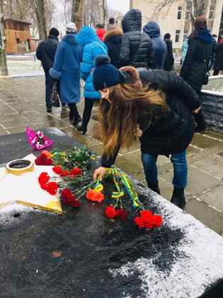Учні ліцею на чолі зі своїми наставниками поклали квіти до пам'ятника Т.Г.Шевченка з нагоди цих подій.