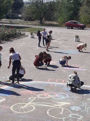 15 вересня у ліцеї серед груп дівчат проводився конкурс малюнків на асфальті.