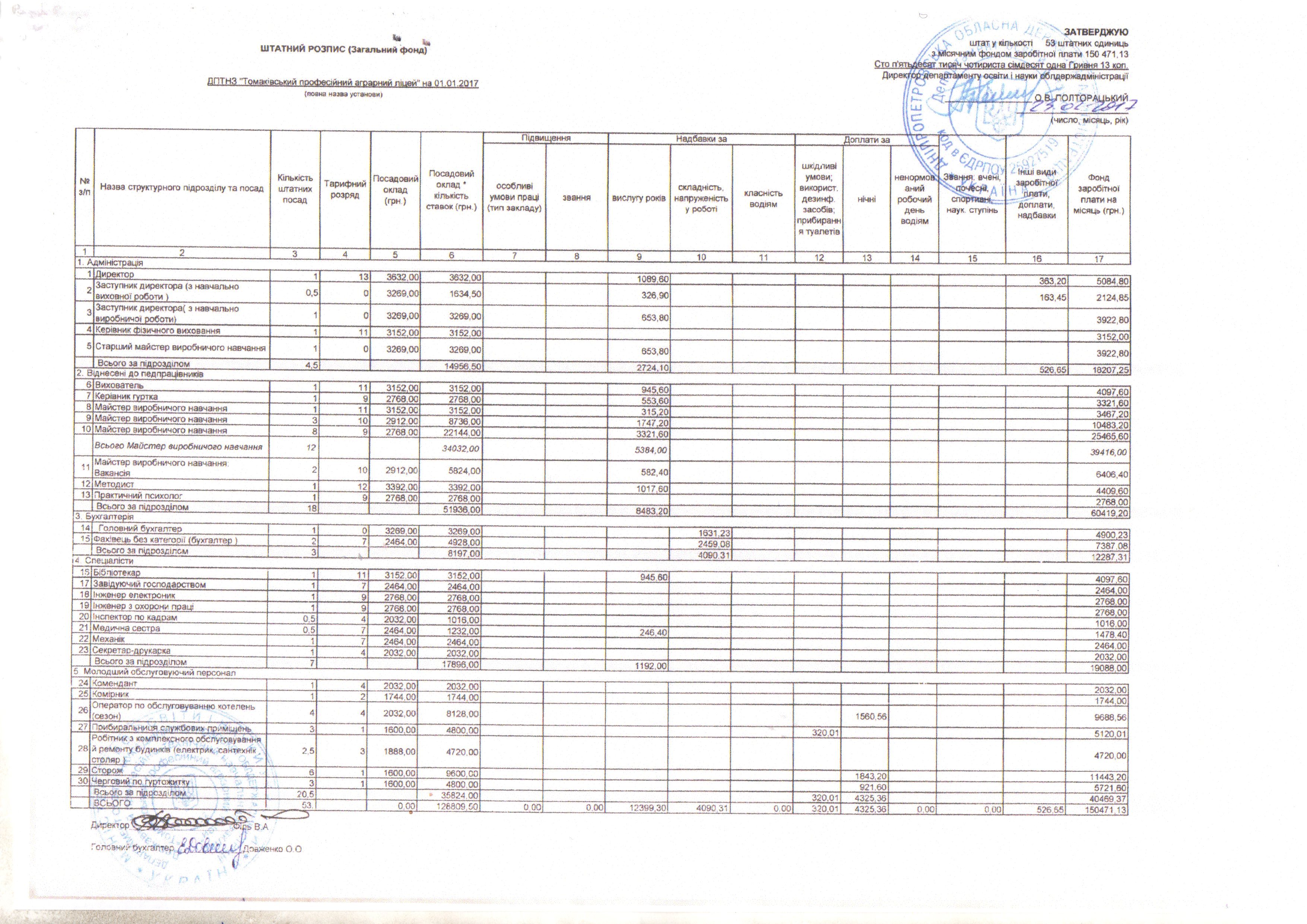 Штатний розпис станом на 01.01.2017 (Загальний фонд)