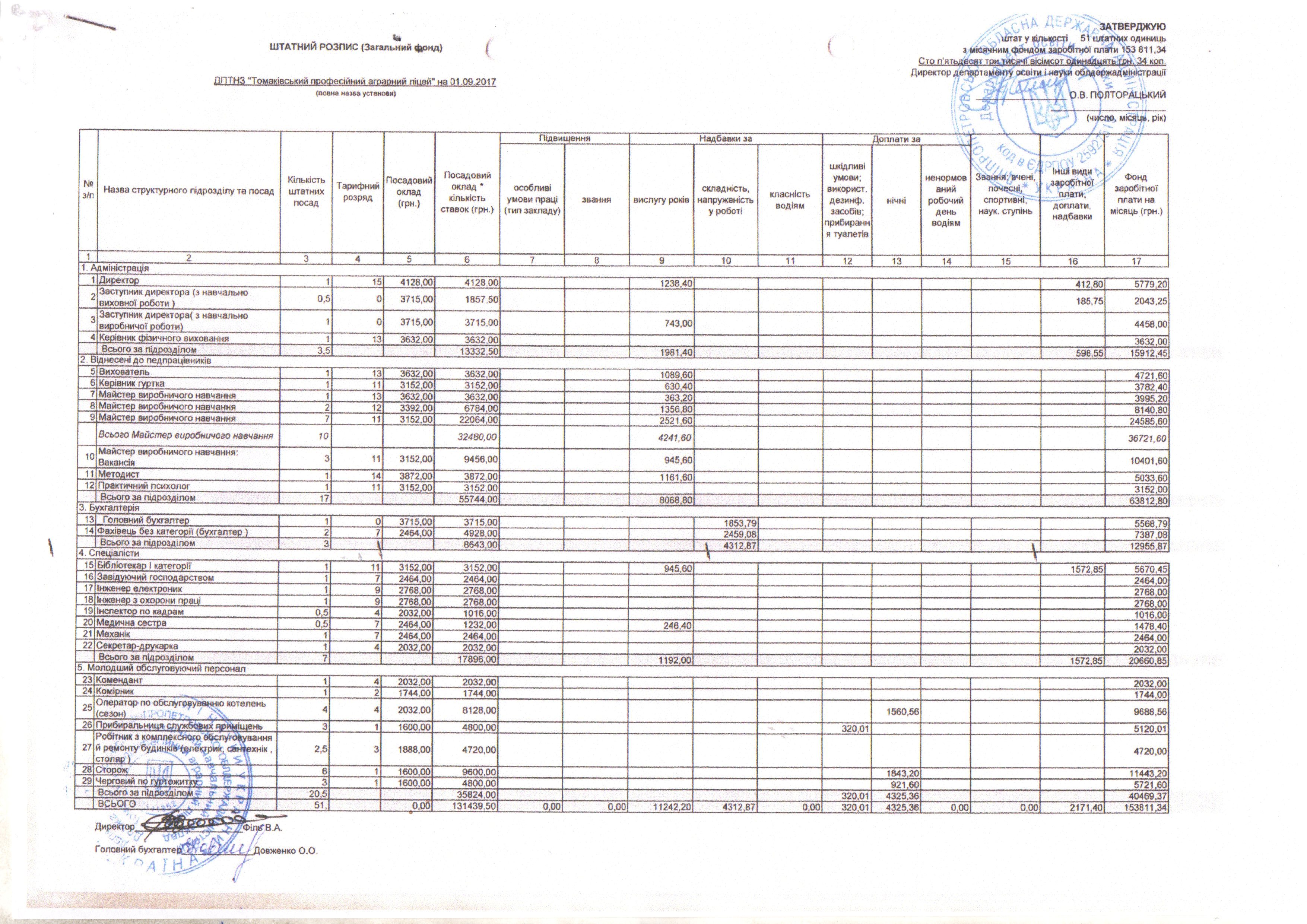 Штатний розпис станом на 01.09.2017 (Загальний фонд)
