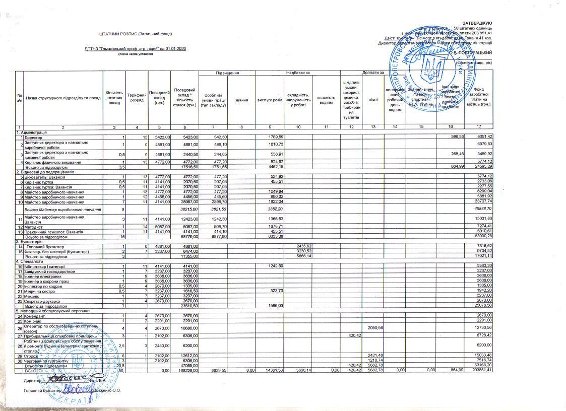 Штатний розпис станом на 01.01.2021р. (Загальний фонд)